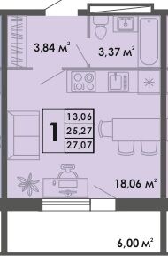 Студия 27,07 м² ・ № 149 ・ этаж 15/16 ・ ЖК Маяк, 2 очередь