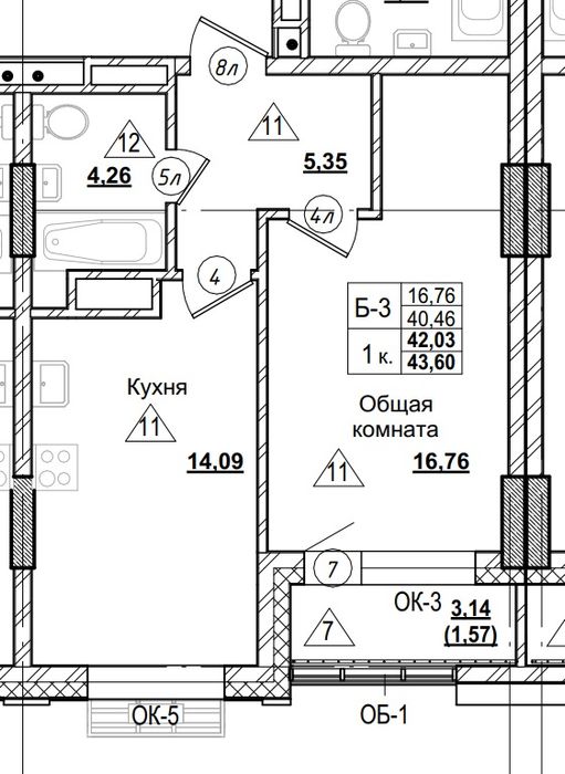 1-комн. 42,03 м² ・ № 163 ・ этаж 5/16 ・ ЖК Город в Парке, блок Б