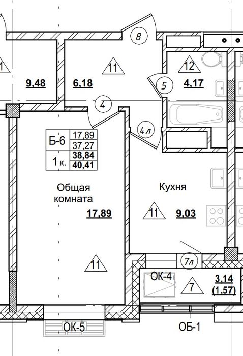 1-комн. 38,84 м² ・ № 247 ・ этаж 14/16 ・ ЖК Город в Парке, блок Б