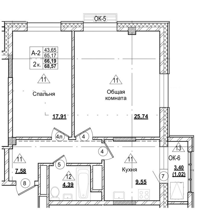 2-комн. 66,19 м² ・ № 117 ・ этаж 15/16 ・ ЖК Город в Парке, блок А