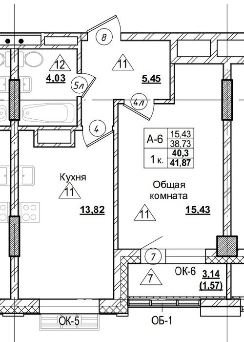 1-комн. 40,30 м² ・ № 31 ・ этаж 5/16 ・ ЖК Город в Парке, блок А