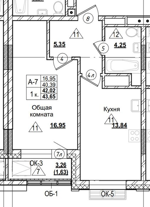 1-комн. 42,02 м² ・ № 95 ・ этаж 12/16 ・ ЖК Город в Парке, блок А