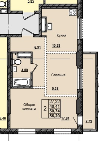 2-комн. 50,74 м² ・ № 120 ・ этаж 11/16 ・ ЖК Прайм