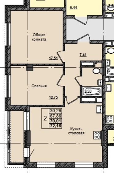 2-комн. 70,01 м² ・ № 126 ・ этаж 11/16 ・ ЖК Прайм