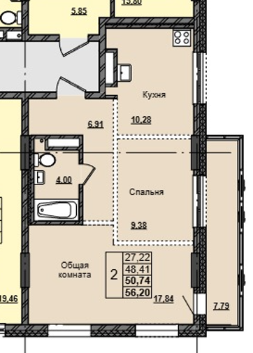 50.74 м2