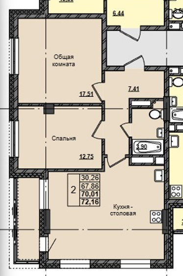 2-комн. 70,01 м² ・ № 139 ・ этаж 12/16 ・ ЖК Прайм
