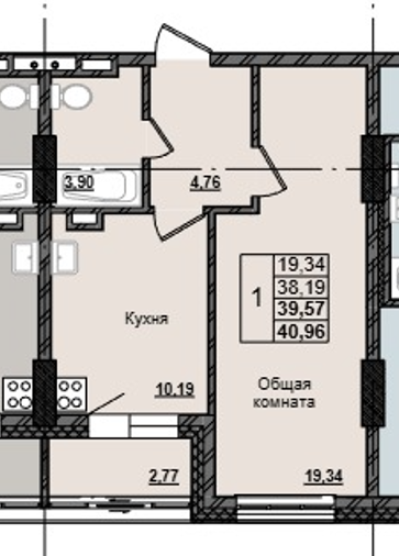 1-комн. 39,57 м² ・ № 8 ・ этаж 2/16 ・ ЖК Прайм